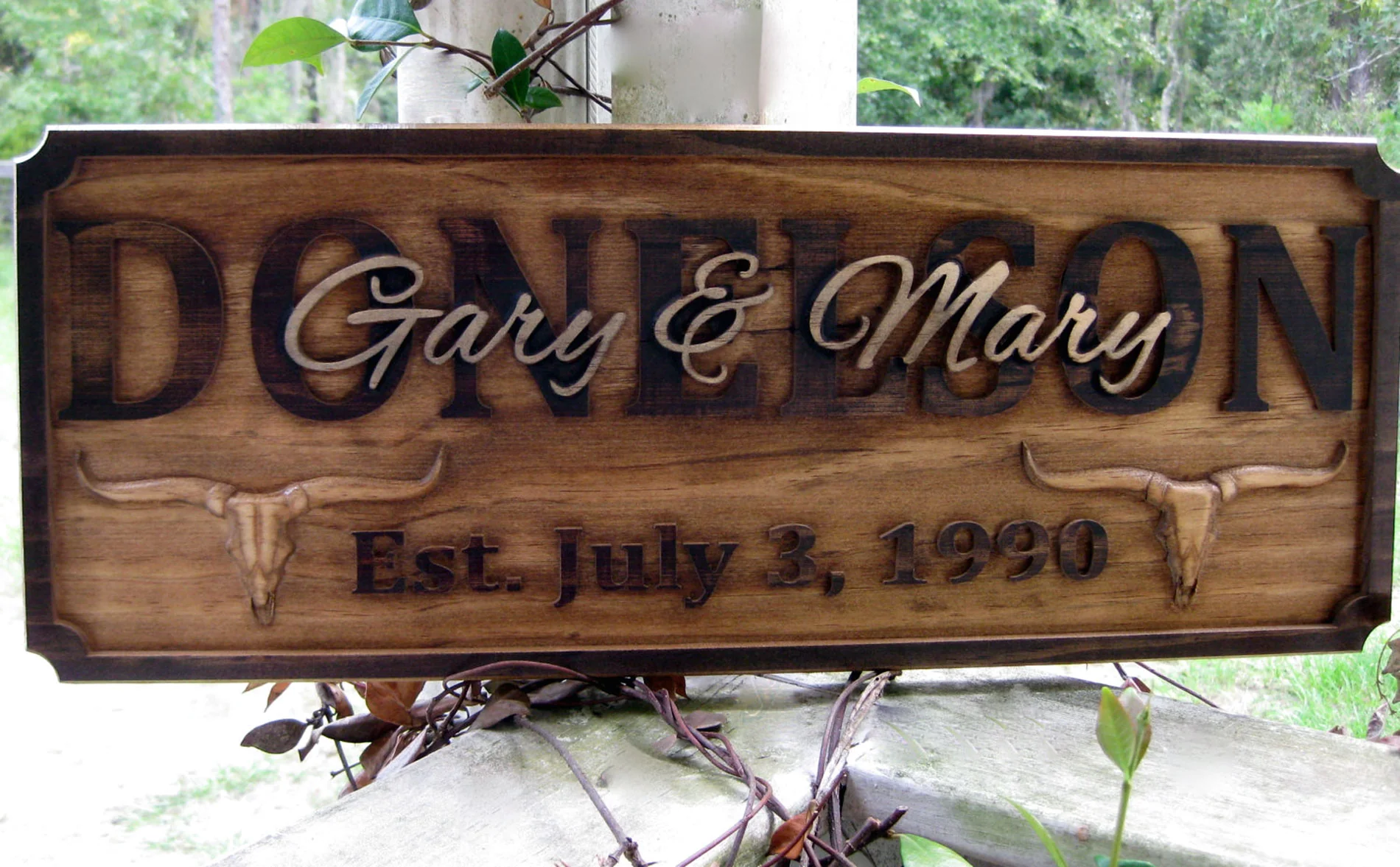 Enjoy our wonderful CustomHorseSigns.com personalized custom wood carved horse barn or ranch signs. The Ranch name is the centerpiece in raised, ALL CAPS text. We then layer on top your preferred text in a fancy Script font. The Established date is the established date of the home/farm. These are made custom with superior wood-working skills and extreme care. We will tailor this as needed. Choose from a number of wonderful graphics. Please contact us with any questions.