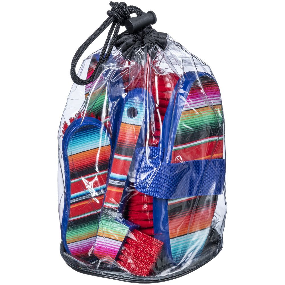 This is fun set of brushes with vibrant printed designs will set your brushes apart from your friends! The package includes a medium bristle body brush, oval dandy brush, soft face brush, and a hoof pick with brush.